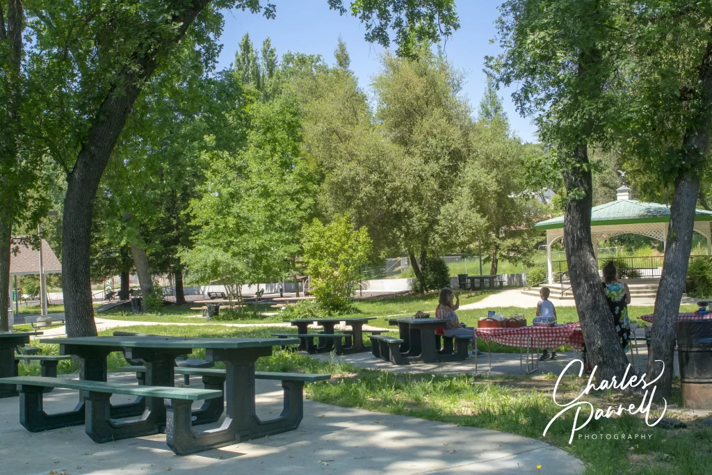 Last but not least on our roundup of Calaveras County picnic areas is Town Square Park in Copperopolis. It’s also one of the newest parks in the area. There’s level access to this small park, which is located across the street from The Gateway Hotel on Stone Street. Accessible parking is located in the Town Square parking lot, and in back of the Gateway Hotel. There’s only a few picnic tables in the park, but there are a number of benches and a gazebo as well. It’s just a pleasant spot to take a break.