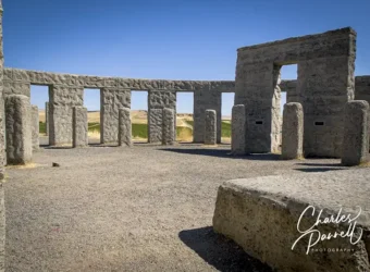 This full-size Stonehenge Memorial is located on the south bank of the Columbia River, just off of Interstate 84, near Biggs Junction, Oregon. Take exit 131, then head north on Highway 97, and make a right on Highway 14. Stonehenge Drive is located just a mile up the road. This monument was erected in 1918 as a memorial to local soldiers who died in World War I. A small memorial ceremony is held on the anniversary of the death of each of the 14 soldiers honored at the monument.