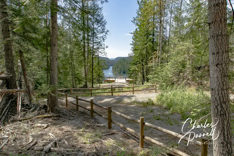 Vista House, which is the first wheelchair-accessible Pend Oreille River view, is located just south of the Nelson-Metaline border crossing along the International Selkirk Loop (emerginghorizons.com/the-international-selkirk-loop-for-wheelchair-users-and-slow-walkers/). From Highway 31, (the International Selkirk Look) turn west on East Side Road near Crescent Lake. As soon as you turn on to East Side Road you’ll be captivated by the view of Crescent Lake on the left, and as you drive through the forest, you’ll see bits and pieces of it along the way. Continue along the road for about two miles, until you reach Vista House at the end of the line.